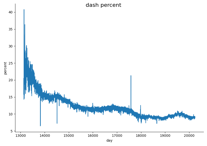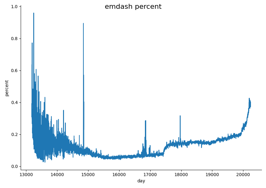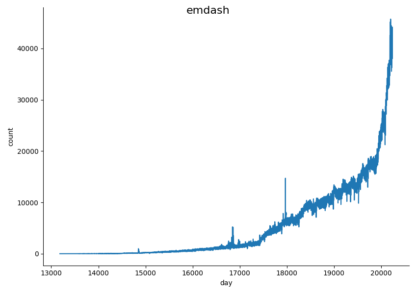 Format: day (as unix timestamp / 86400), dash/emdash/count/both, count